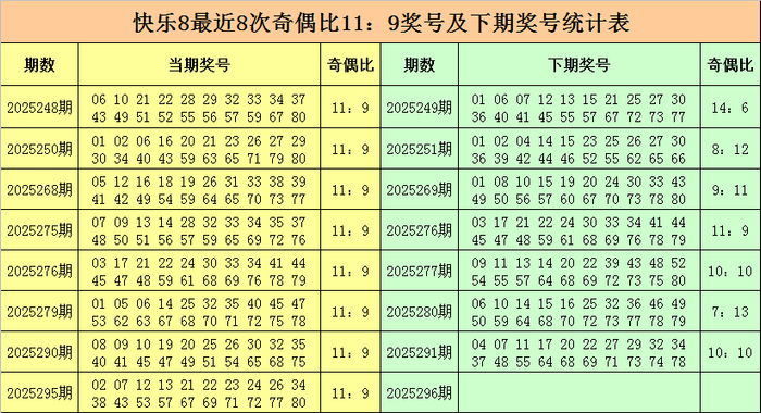 快乐8第2025296期奖号位置分析