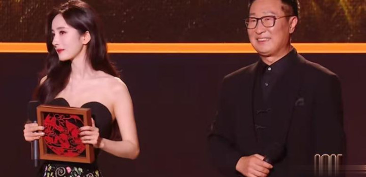 不仅有杨幂一个人上台领奖,在剧中饰演绣绣爸的林永健老师也一同登台。